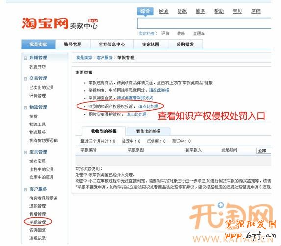 申訴位置:賣家中心-舉報管理-收到的知識產權投訴