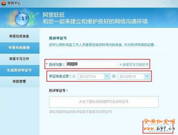 特別說明:阿里旺旺舉證時間只能為最近75天,同時舉證號有效期為15天。