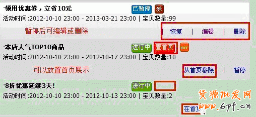 注意:1.進行中的活動,必須暫停后,才能進行編輯和刪除的操作.