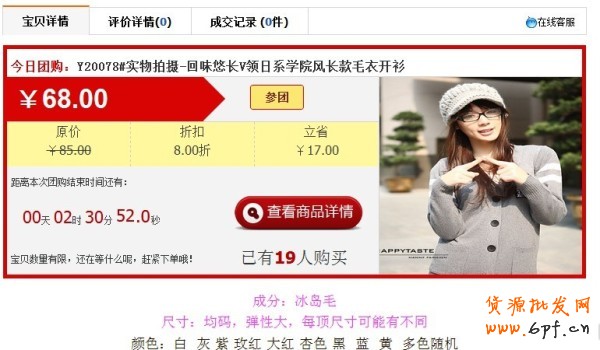 6、團購秒殺,通過設置團購秒殺活動,設置安裝到所有寶貝詳情上面,通過設置參團人數和倒計時的,促銷買家的參團欲望,快速下單購買。