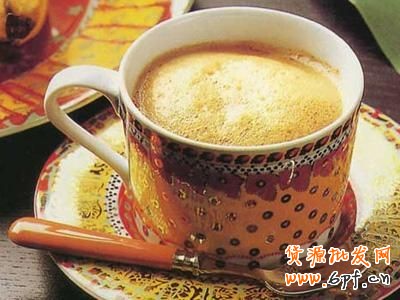 配制方法:在奶盆里倒入研細(xì)的深煎炒咖啡和肉桂等香料,攪拌均勻,然后倒入鍋里,加些水煮沸3次,從火上拿下。待粉末沉淀后,將清澈的液體倒入杯中,這時(shí)慢慢加入橙汁和蜂蜜即成。