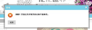 裝修了店鋪首頁后,點(diǎn)擊發(fā)布,出現(xiàn)“抱歉!頁面寶貝詳情頁的名稱不能修改” 給淘寶客服留言N次,問題沒有得到解決。給客服打了兩次電話,一樣無法解決。已經(jīng)過去一個月了,真的是急死人了。誰能告訴我怎么辦啊!