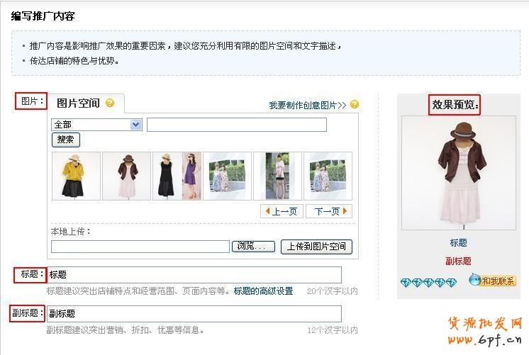第五步:設(shè)置推廣圖片、標(biāo)題、副標(biāo)題和推廣關(guān)鍵詞