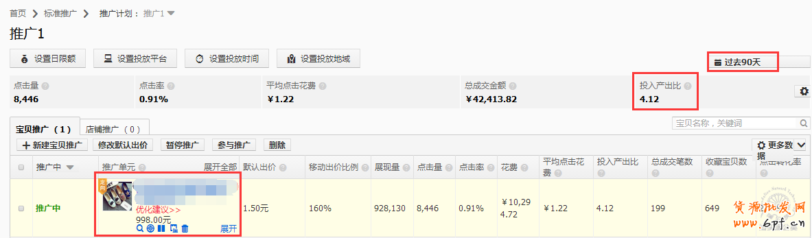 從上圖可以看出,該款夏季寶貝在過去90天的推廣期間,ROI=4.12,引進的流量促進的總成交金額在8月,也就是在夏季末開始呈現下滑的趨勢。