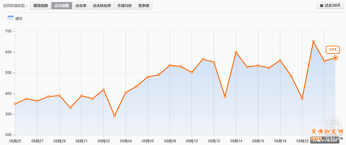 以上是店鋪的部分產品,店鋪主營就是五金/工具 > 緊固件,螺絲螺母類的配件,可以說該類目屬于小類目,行業競爭不比服裝或食品類行業,競爭相對較小,從流量解析我們可以得知,大詞的點擊指數也只有一千多和幾百,競爭小的同時,該行業的行業搜索指數也是比較少的,那么如果在這比較狹窄的市場競爭流量,就是一個店鋪經營成敗的先決條件。