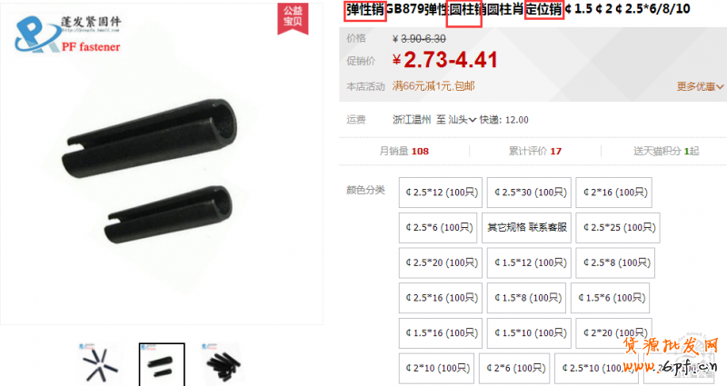 該寶貝是彈性圓柱的定位銷,故可以爭取競價位置。