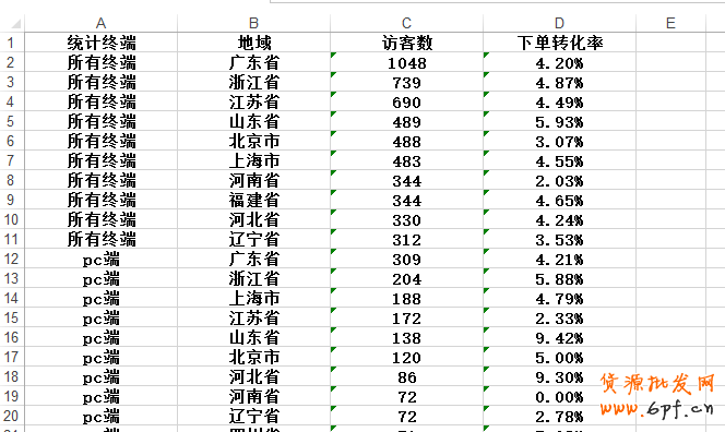 首先看第一張圖,不知道大家發現有什么跟平時看到的數據源有什么不同沒有,可能很多細心的朋友已經發現了,就是所有數字的單元格左上角都有一個綠色的小三角。這個小三角是什么含義呢,小三角的含義是,單元格里面不管是什么樣的一個內容,不管是數據也好,百分數也好,它存儲的一個邏輯是文本的一個形式,簡單來說就是跟漢字是一樣的,我們數字的話,他有大小,有比較,能夠進行一些算法,但是如果說是漢字的一個相加,就完全沒有一個邏輯了,比方說,四川省和遼寧省不能進行一個邏輯上的相加。所以要使得數字變成真正的數值。選擇中這一片要轉換的區域之后,這片區域的左上角會有一個黃色的小標,