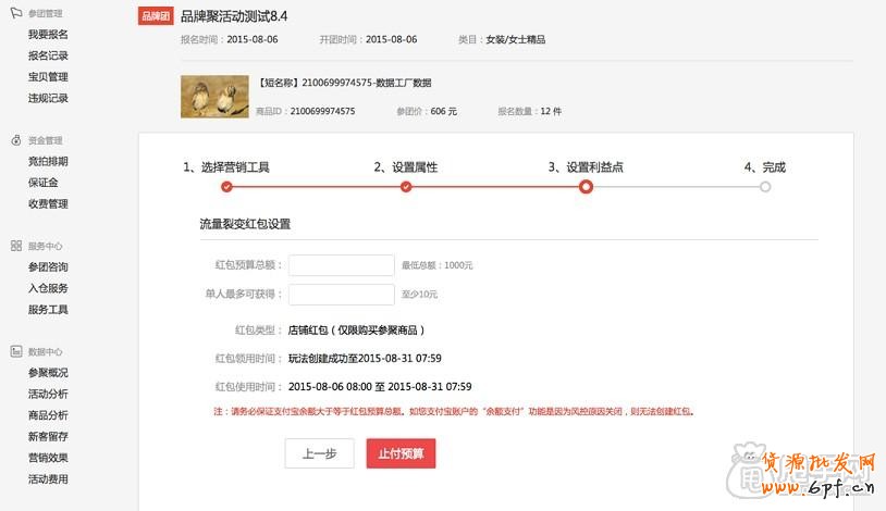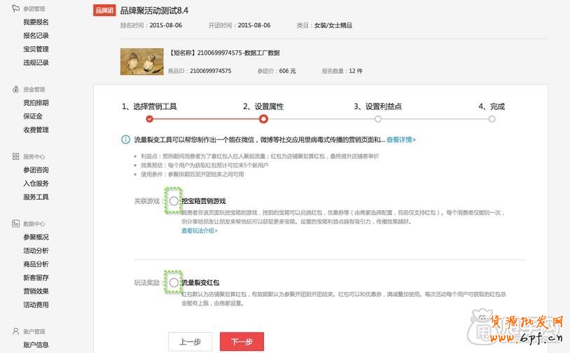注意:在參加淘寶聚劃算報名排期后至開團結束前都可以進行設置,不管是品牌團還是商品團活動都是通過報名紀錄進入設置,不是通過寶貝管理進入。