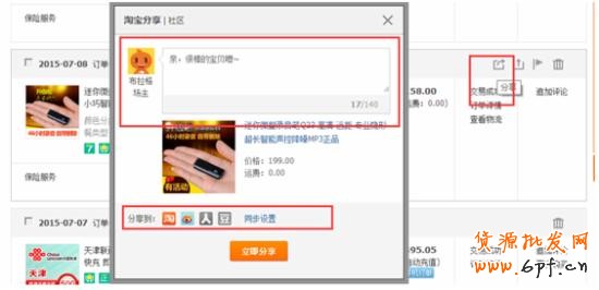 然后看看分享,大家都知道購(gòu)買完寶貝后,可以看到這個(gè):