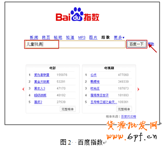 現(xiàn)在就打開【百度指數(shù)】首頁,在搜索欄中,輸入你網(wǎng)站的主要目標關鍵詞“兒童玩具”,如圖2所示,單擊“百度一下”按鈕。