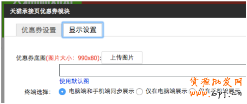 比如優惠券模塊是在“顯示設置”里設置的,可以根據需求,在電腦端和無線端分別添加模塊進行差異化內容呈現。