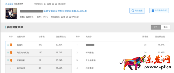 4、查看核心商品詳情,實(shí)時(shí)展現(xiàn)商品流量來(lái)源,訪客數(shù)占比、訪客數(shù) ; 默認(rèn)選中排名第一的二級(jí)來(lái)源,右側(cè)展示二級(jí)來(lái)源的明細(xì)來(lái)源,每頁(yè)展示10個(gè),PC端僅支持以下來(lái)源細(xì)分:淘寶客、直通車(chē)、鉆石展位、聚劃算、淘寶搜索、淘寶頻道、淘寶類(lèi)目、愛(ài)淘寶、天貓搜索、天貓頻道、淘寶活動(dòng)、天貓活動(dòng)、淘寶站內(nèi)其他;其中天貓搜索、淘寶搜索提供TOP100搜索詞;其他提供TOP100來(lái)源URL。無(wú)線端僅支持天貓搜索、淘寶搜索,所選來(lái)源暫不提供細(xì)分來(lái)源!