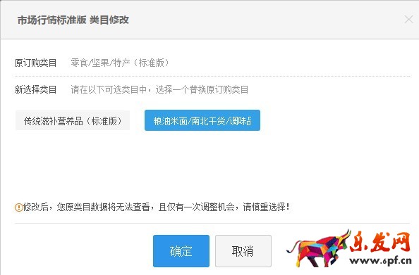 市場(chǎng)行情類目變更功能已經(jīng)發(fā)布上線,每個(gè)訂購(gòu)市場(chǎng)行情的訂單在服務(wù)周期內(nèi)允許進(jìn)行一次自助變更類目,請(qǐng)注意僅有一次調(diào)整機(jī)會(huì)。請(qǐng)各位掌柜慎重操作。