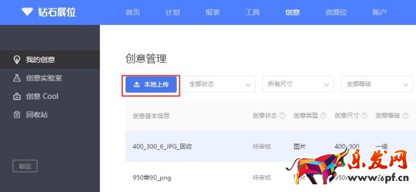②打開創(chuàng)意管理,點擊本地上傳