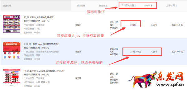 選擇資源位最主要看兩點:日均可競流量、點擊率(CTR),尋找那些CTR好同時且日均展現(xiàn)較高的展位,可以加入收藏,進(jìn)行投放測試,如果效果不錯再進(jìn)行長期的投放。