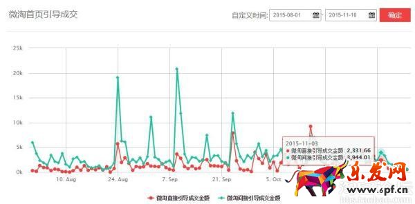大家可以看到我們近三個月的一個數據情況,圖1中微淘流量的趨勢整體都是呈上升趨勢的,特別是大促期間的微淘引導的UV增長會特別明顯。而圖2是我們微淘引導成交的情況,總體也是上升趨勢,而大活動期間尤為明顯。即使是在雙11全面預熱的情況下,各家日銷疲軟時,我們微淘引導成交仍舊影響不是很大。