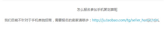 無(wú)線聚劃算:無(wú)線的聚劃算和PC端的一樣,包含商品團(tuán),品牌團(tuán),生活匯,聚名品等多個(gè)聚劃算活動(dòng),都在聚劃算后臺(tái)報(bào)名。但目前手機(jī)聚劃算沒(méi)有單獨(dú)報(bào)名入口。