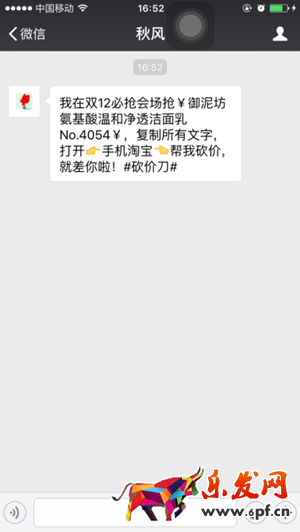 Step2:用戶可以把淘口令分享到朋友圈或者發給微信好友等社交渠道,邀請好友參加活動。該方式預估輻射人群可以達到活動庫存的5-10倍,甚至更多,對于品牌、店鋪的推廣與傳播效果高于其他玩法。活動中,御泥坊配合微信、微博等渠道大面積的覆蓋,同時,最大化利用進入店鋪的流量。