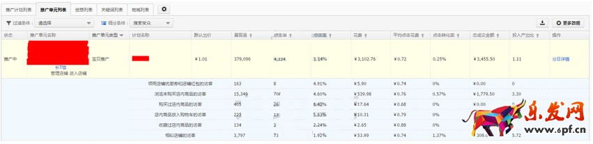 推廣單元列表的細分條件多了一個搜索受眾,可觀察到領用店鋪優惠券和店鋪紅包的訪客,瀏覽未購買店內商品的訪客等不同人群的展現與點擊量,了解搜索人群,根據數據,能對直通車推廣做一定調整。