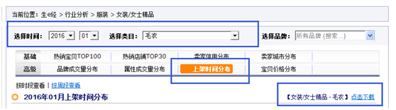 這個我們一般可以從生e經當中去看,路徑:生e經——行業分析——找到你的類目——上架時間分布——下載數據。