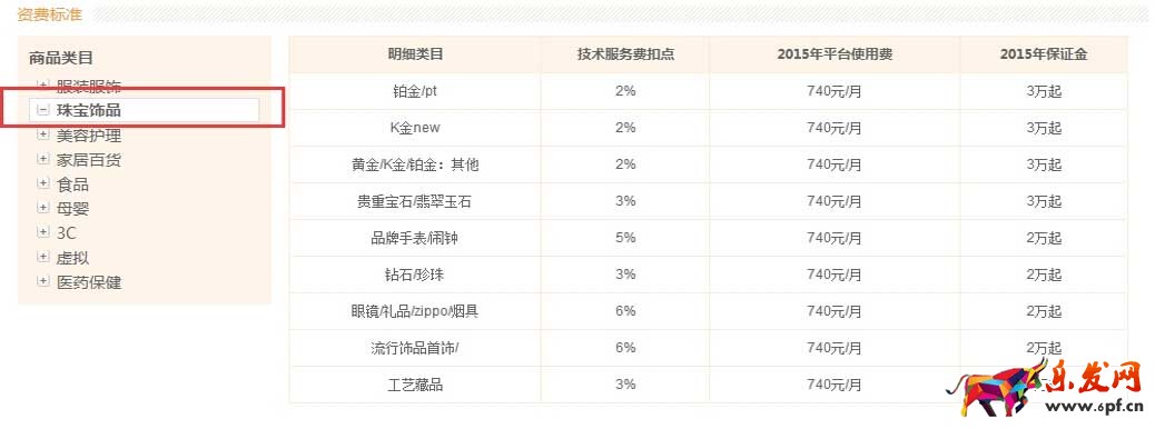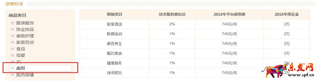 下圖為各類目商品的資費標準(點擊放大):