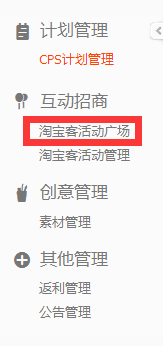 1、通過阿里媽媽后臺的淘寶客活動廣場尋找。(命名,鵲橋)