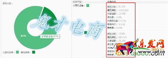 其中直通車后臺(tái)的流量解析工具是很實(shí)用的,在直通車后臺(tái)進(jìn)入流量解析,輸入關(guān)鍵詞看該關(guān)鍵詞的流量透視,這里有數(shù)據(jù)很好的透視關(guān)鍵詞的流量分布情況,無(wú)線與PC的流量占比一目了然,如果在無(wú)線端具有明顯流量趨勢(shì),那么這個(gè)關(guān)鍵詞我們就可以重點(diǎn)投放于無(wú)線端。