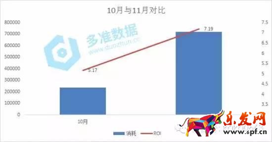 消耗提升了205.83%,ROI提高了39.07%。在消耗大幅度提升的同時,ROI不降反生。(為了避免雙十一活動的影響,ROI對比選取7天的維度)。