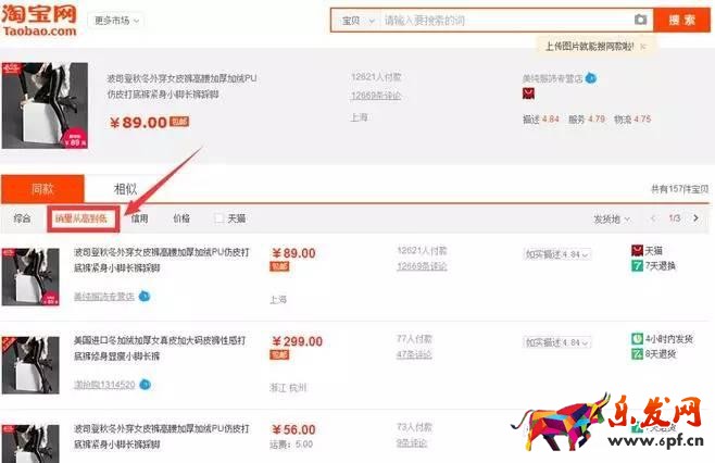 打開淘寶搜關(guān)鍵詞,搜索“皮褲”,然后找到自己的款式,點(diǎn)擊找同款: