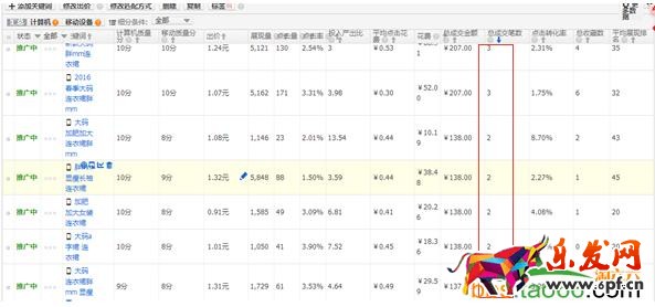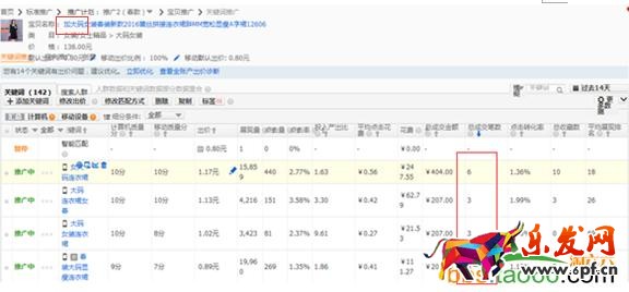 分析:(1)從寶貝的一個(gè)標(biāo)題上可見,寶貝主要以大碼女裝為主的,因此在添加關(guān)鍵詞上,以“大碼”和“胖mm”這2個(gè)方面進(jìn)行添加。(2)從寶貝的一個(gè)關(guān)鍵詞上看,能夠成交的關(guān)鍵詞是較多的,但是這些關(guān)鍵詞的成交筆數(shù)都是較少且存在偶然情況。