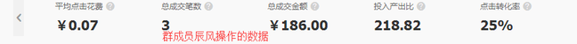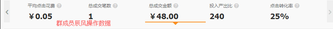 現在肯定有很多人覺得我吹牛了,不好意思你覺得我是吹牛的話那么你就錯了,因為之前有很多人都覺得我吹牛,但是在群里直播的時候數據證明讓他們相信了我,結果私聊我的人是越來越多,都想知道這種操作手法,我想告訴你你做不到的事情別人隨手就可以做的到,你不相信只能說明你沒有能力或者你沒有嘗試,也許你是前者的那一個,我一個人操作的數據不算,有人跟著我一起操作得出的結果才算數。(以下數據有我和群成員辰風操作的數據圖,我能持續帶來轉化,只是點擊量不是特別大。)