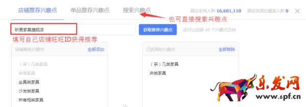 可以輸入某個店鋪旺旺來獲取相應興趣點,一般輸入自己的店鋪旺旺即可!也可以直接直接搜索關鍵詞,添加相應的興趣點。