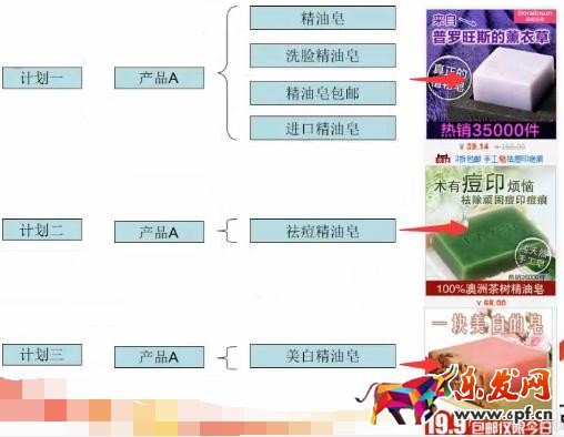 這是一個正確的示范,圖片上有三個計劃,從圖片上我們可以看到針對不同的功能,我們推送的計劃商品主圖是不同的,這樣可以加大客戶選擇的余地。