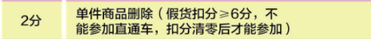 2分:單件商品刪除(假貨扣分≥6分,不能參加直通車,扣分清零后才能參加