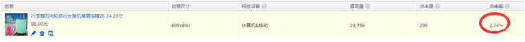 很多賣家在優化創意的時候,往往會直接查看已設置好的創意進行總體點擊率對比,其實默認看到的是對應創意的匯總,即無線和PC的點擊率的總體數據反饋。為了讓點擊率能針對性的調整而得到提高,我們應該從細分條件(如下圖)那邊,分別對比計算機和移動端的點擊率情況進行分析,因為直通車賬戶點擊率偏低的直接原因可能就在于創意集中展現在PC端,但點擊率在PC端卻總體走低,移動端則無展現,更談不上點擊率可以拉升總體點擊率的點上了。