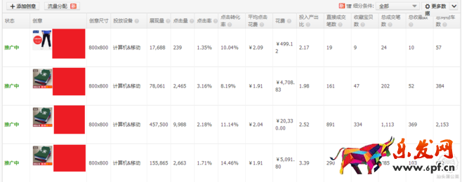分析:創意的優化主要要求圖片簡潔清晰,突出寶貝及賣點,先通過輪播的流量分配方式挑選出點擊率最好的圖片及創意標題,再通過優選流量分配方式,使寶貝獲得最好的點擊率。