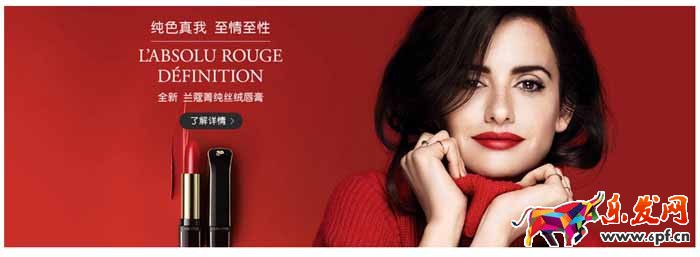案例一,一個很平淡的設計,沒有炫酷的背景,沒有超級好看的元素,普通且平淡的海報圖,只有一張模特圖,一個紅色的背景而已,簡單的文字信息,所要表達的相關產品,化妝品。(小訣竅)當我把文字部分拿掉,我還知道是賣的是化妝品類目。