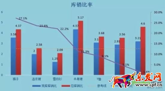b連衣裙和雪紡衫(配合褲子主類的搭配),是所有品類中,庫銷控制最合理,也是拉低整體庫銷比最重要的地方了。