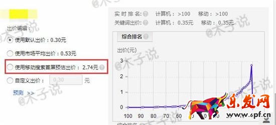 針對出價下面跟大家分析一下,首先使用移動搜索首屏預估出價: