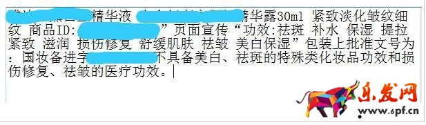 涉案商品批準文號為國妝備進字,并非特妝準字,不屬于特殊化妝品,但被告卻在商品描述頁面宣傳特殊化妝品功效(美白、祛斑等),存在虛假宣傳的情況,違反《中華人民共和國廣告法》;