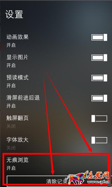 ②點擊開啟“無痕瀏覽”,清理緩存和cookies等。
