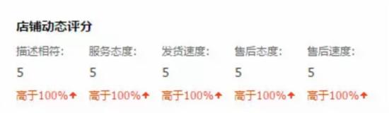 描述相符、服務態度、發貨速度、售后態度、售后速度。
