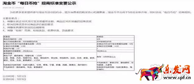 9、淘搶購:淘搶購招商規則修訂,主要變更點:主要新增了主營類目為消費卡,購物提貨券,餐飲美食的店鋪開店時長要求在30天及以上、店鋪信用等級一鉆以上等。該規則已經生效。具體可通過淘搶購新增招商類目,給更多賣家機會了解!