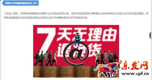 6、國家工商總局發布《網絡購買商品七日無理由退貨實施辦法(征求意見稿)》,并公開征求意見。這是繼2014年《消費者權益保護法》(以下簡稱《消法》)和《網絡交易管理辦法》實施以來,首次對網絡無理由退貨條款進行調整。