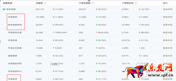 一般免費流量影響比較大的主要是手淘搜索,手淘首頁。如果手淘首頁流量下滑,可能是產品不再被淘寶進行推薦,像是手淘首頁的猜你喜歡是主要的推薦渠道,這個時候就需要重點關注在主推款的收藏和加購比率是否有問題,如果手淘首頁這塊沒有問題,主要是手淘搜索流量下降,就需要重點關注下單品的流量趨勢。