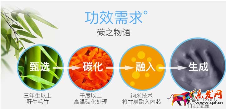 2、由于有貨源的支持,在原有的記憶棉基礎上表面再加一層竹炭材料,并突出竹炭材料的透氣性,詳情頁及主圖上都突顯竹炭,從功效上打動消費者,實現淡季不淡。
