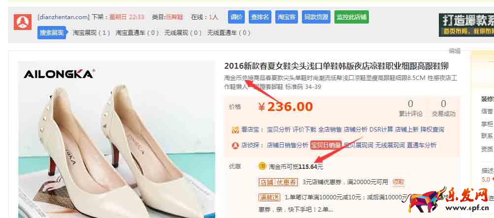 5、然后在出售中的寶貝里面找到剛剛添加破零的寶貝,進行編輯。在寶貝的賣點和標題里面添加淘金幣抵錢這樣的字眼,具體添加什么,還是要用生意參謀具體的分析下: