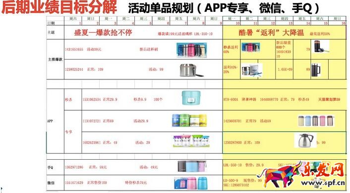 (注:本板塊是最難做的一頁ppt,因為所以的業(yè)績需要分解到單品上,分解到端口銷售數(shù)量上,如果拍腦門亂寫,運(yùn)營一眼就能看出來,如果存在欺騙手段,可能就適得其反了。)