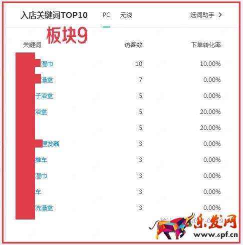 繼續往下,進入板塊9,進入入店關鍵詞TOP10: