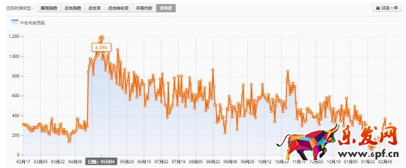 同行競爭力上來說,關鍵詞“中老年家居服”在行業搜索中,點擊指數過去一年中最高為1046個點擊,而競爭度為最高為1191。實際上對比起來,競爭度還是要高于買家搜索點擊數的。那么你如何在同行中脫穎而出?